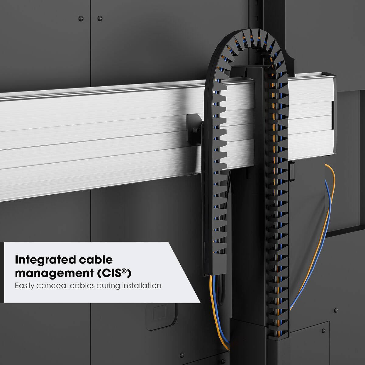With its stylish and timeless design, this Vogel's mobile motorized display lift fits into any environment, such as a school, meeting room, lobby or boardroom. The sturdy column base can easily lift any brand of interactive flat panel display up to 98" with a maximum weight of 120 kg. Cable management (CIS®) allows easy concealment of cables during installation.