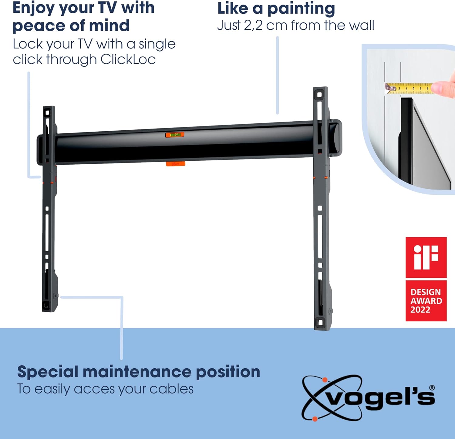🎨 FRAMED LIKE A PAINTING: Give your room a sleek, modern look with only 0.9 inches of separation between your TV and the wall. Achieve a minimalist aesthetic and secure your TV with a single, convenient click through ClickLoc technology.
